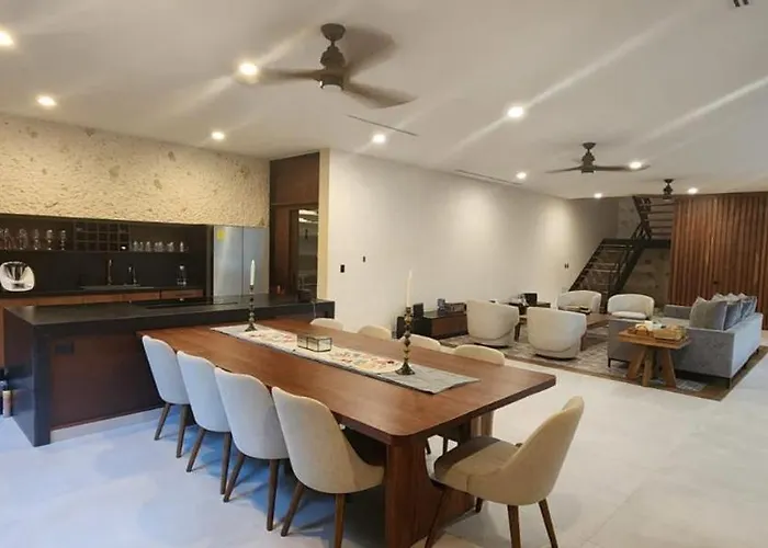 Spacious And Luxurious Villa With 4 Bedrooms, Swimming Pool, Tennis Court, And Beach Within Walking Distance provides an equipped kitchen with an electric kettle, a fridge, and glassware. The Playa del Carmen property is in the vicinity of restaurant Blucacao. Guests can easily reach Playa Del Carmen, Quintana Roo airport, located 5 km from this Playa del Carmen property. You can indulge in a year-round outdoor swimming pool or rent bicycles and explore the beauty of Playa del Carmen.